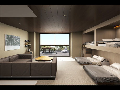 <h2>渋谷にテイクアンドギヴ・ニーズのホテル、5月開業へ。テラス付きやバルコニー付きなど7タイプの15室を用意する客室イメージ(写真はバルコニージュニアスイート)</h2>