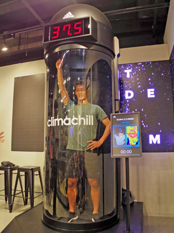 渋谷・文化村通り沿いの「アディダスブランドコアストア渋谷」(渋谷区宇田川町、TEL 03-5456-6810)で現在、冷却テクノロジー「climachill(クライマチル)」搭載のトレーニングウエア体験イベント「CLIMA CYINDER」が開催されている。