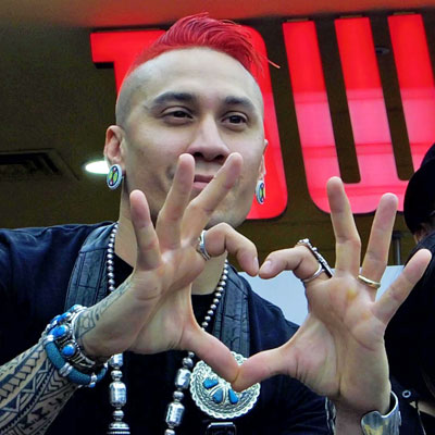 <h2>米ヒップホップグループ「BLACK EYED PEAS」、タワレコ渋谷店でイベント。指でハートマークを作るタブーさん</h2>