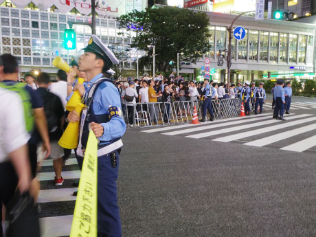<h2>サッカー日本代表、ロシアW杯出場決定。アルミ製の柵と規制ベルトで交差点中央へ侵入させないようにした</h2>