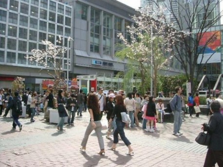 改修工事が終わり、人の流れがスムーズになった「ハチ公前広場」付近。写真後方が新しく生まれた「喫煙所」