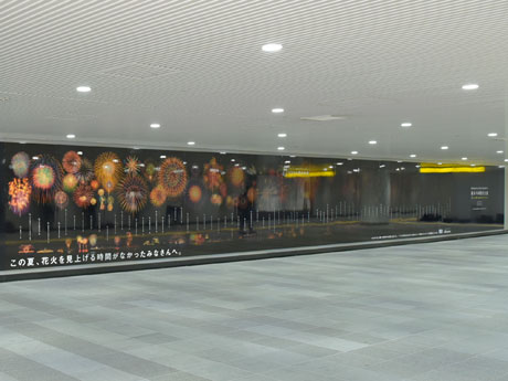 東急田園都市線渋谷駅地下コンコースで9月4日、NTTドコモ(千代田区)による「スマホ花火大会」が始まった。