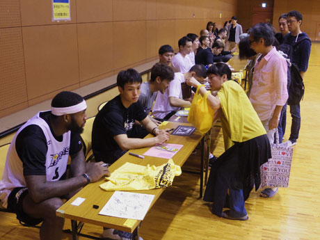 <h2>サンロッカーズ渋谷が初の公開練習。サインに応じる選手たち</h2>