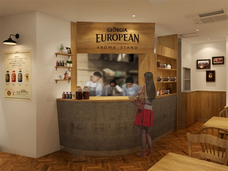 JR渋谷駅・山手線外回りホーム上のアドスタンドで9月25日、「ジョージア ヨーロピアン アロマスタンド」が期間限定オープンする。
