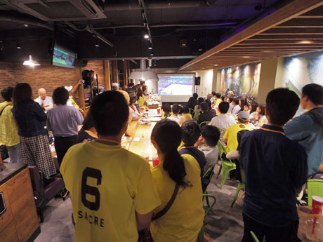 渋谷・道玄坂小路の米発メキシカン・ファストフード「Taco Bell渋谷道玄坂店」(渋谷区道玄坂2)で9月29日、サンロッカーズ渋谷(以下SR渋谷)と琉球ゴールデンキングス(同琉球)戦のパブリックビューイングが開かれた。