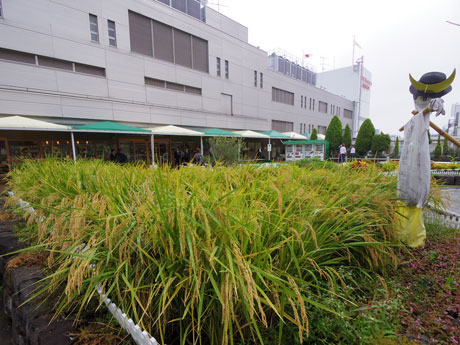 東急百貨店本店(渋谷区道玄坂2)屋上で10月3日、神南小学校の生徒たちが稲刈りを行った。