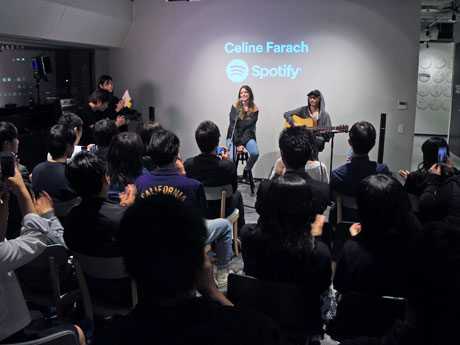 米モデルで歌手のCeline Farach(セリーヌ・ファラク)さんが10月5日、渋谷のスポティファイジャパン(渋谷区渋谷1)で行われた新曲先行試聴会に登場した。
