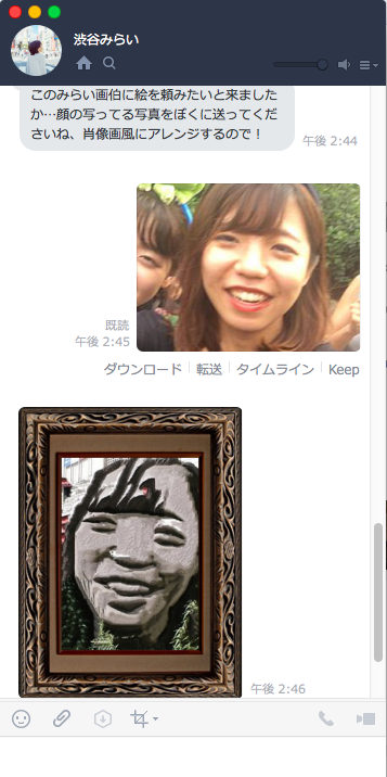 <h2>「友だち」から送られた顔写真をモヤイ像に風にアレンジするトークイメージ</h2>