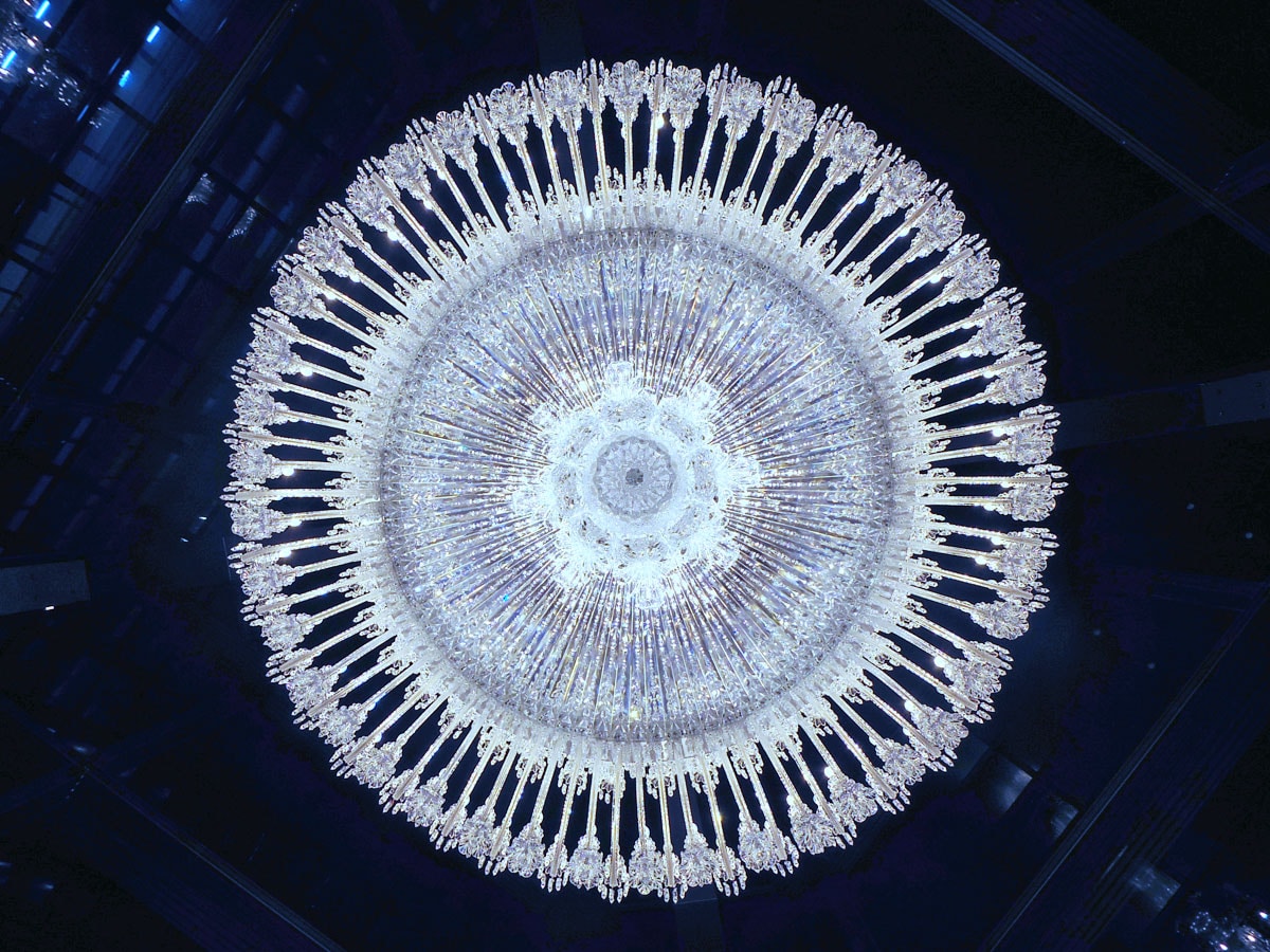 <h2>恵比寿ガーデンプレイスに恒例「バカラ」シャンデリア。真下から見るシャンデリア</h2>