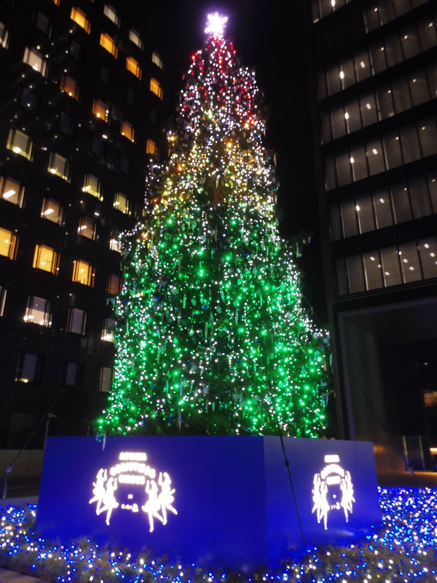 <h2>青山通り沿い・エイベックス本社前にXマスツリー。</h2>
