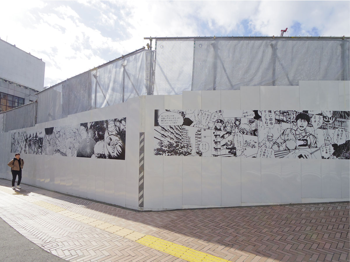 建て替えに向けて工事が進む渋谷パルコ(渋谷区宇田川町)の仮囲いに10月から、漫画「AKIRA」のコラージュ作品が掲出されている。