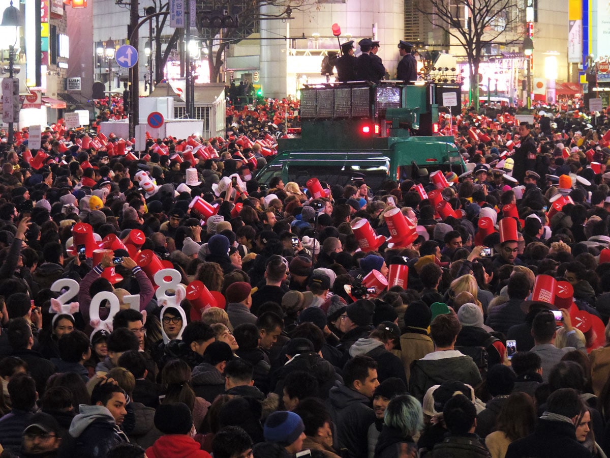 <h2>渋谷駅前で10万人がカウントダウン。多くの人でにぎわったスクランブル交差点</h2>