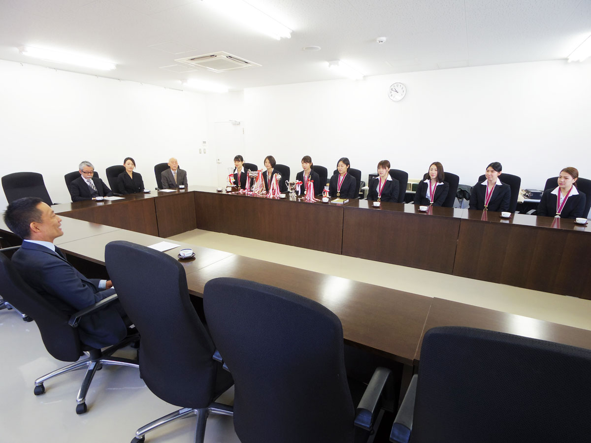 昨年の全日本インカレで優勝した青山学院大学(渋谷区渋谷4)の女子バレーボール部が1月10日、長谷部健渋谷区長を表敬訪問した。