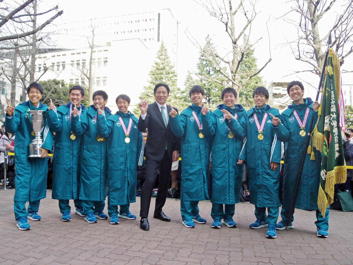 青山学院大学(渋谷区渋谷4)で1月16日、正月の箱根駅伝で4連覇を達成した同大陸上競技部が報告会を開いた。
