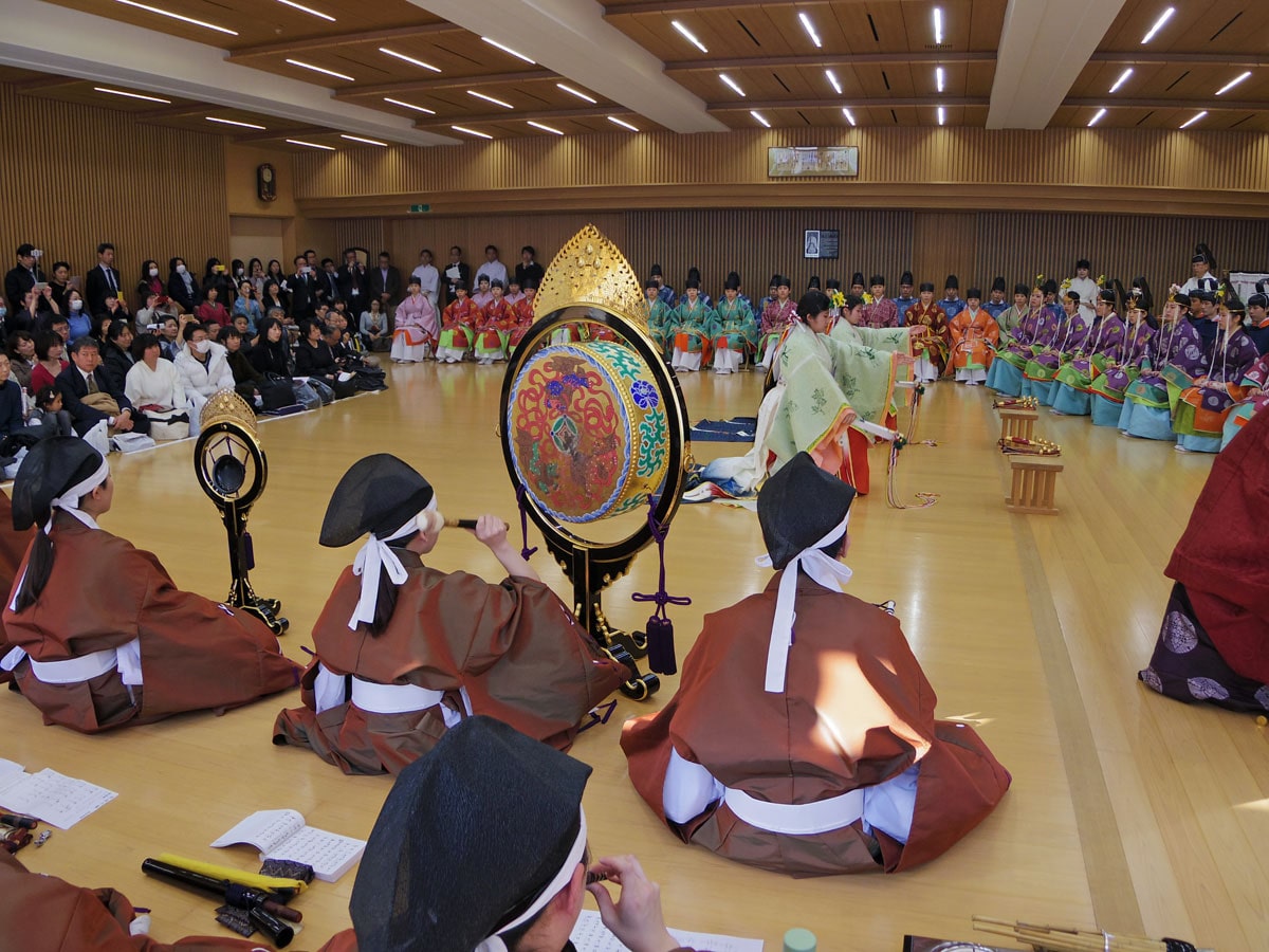 <h2>国学院大学で「成人加冠式」。ボランティアの在学生は舞などで新成人を祝った</h2>