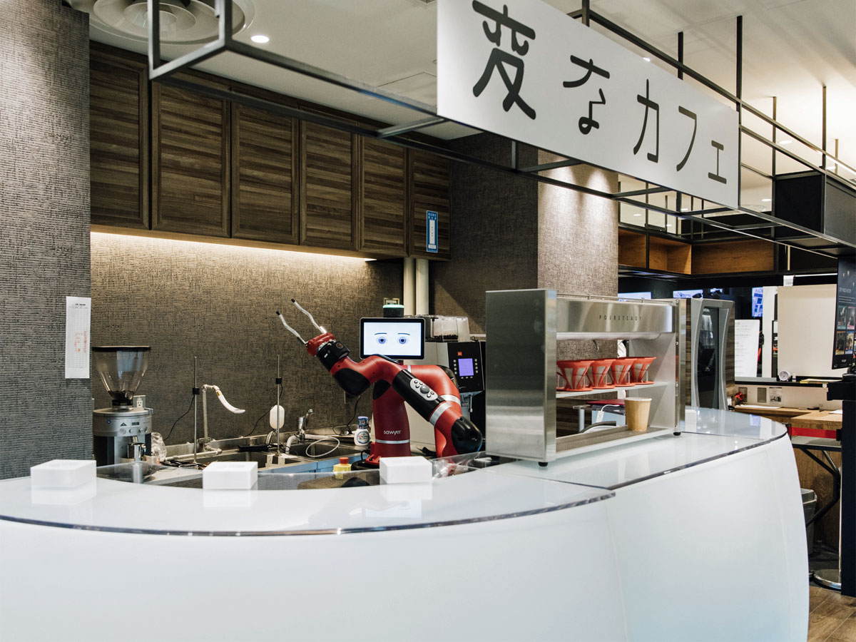 渋谷モディ(渋谷区神南1)地下1階の旅行代理店「H.I.S.渋谷本店」内に2月1日、ロボットがコーヒーを提供する「変なカフェ」がオープンした。
