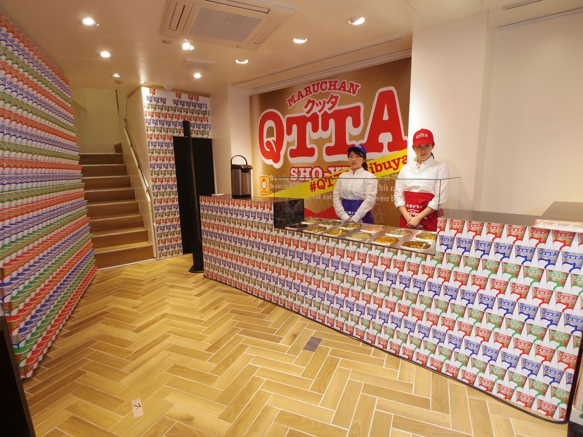 渋谷・井の頭通り沿いに3月15日、カップ入り即席麺「MARUCHAN QTTA(クッタ)」の期間限定ショップ「#QTTAshibuya」(渋谷区宇田川町)がオープンした。
