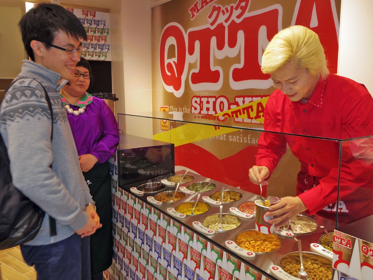 渋谷・井の頭通り沿いに3月15日、カップ入り即席麺「MARUCHAN QTTA(クッタ)」の期間限定ショップ「#QTTAshibuya」(渋谷区宇田川町)がオープンした。