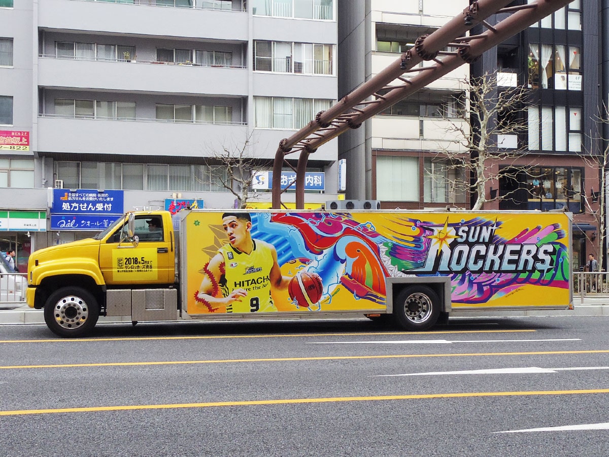 渋谷かいわいで3月15日から、サンロッカーズ渋谷のラッピングトラック「サンロッカーズBig Rig」が走行している。