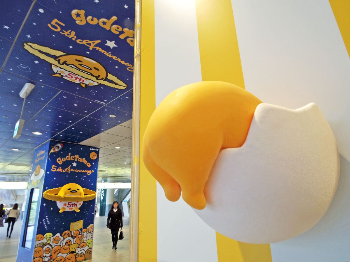 井の頭線渋谷駅改札外のコンコースに4月16日、3D(半立体型)の「ぐでたま」が登場した。