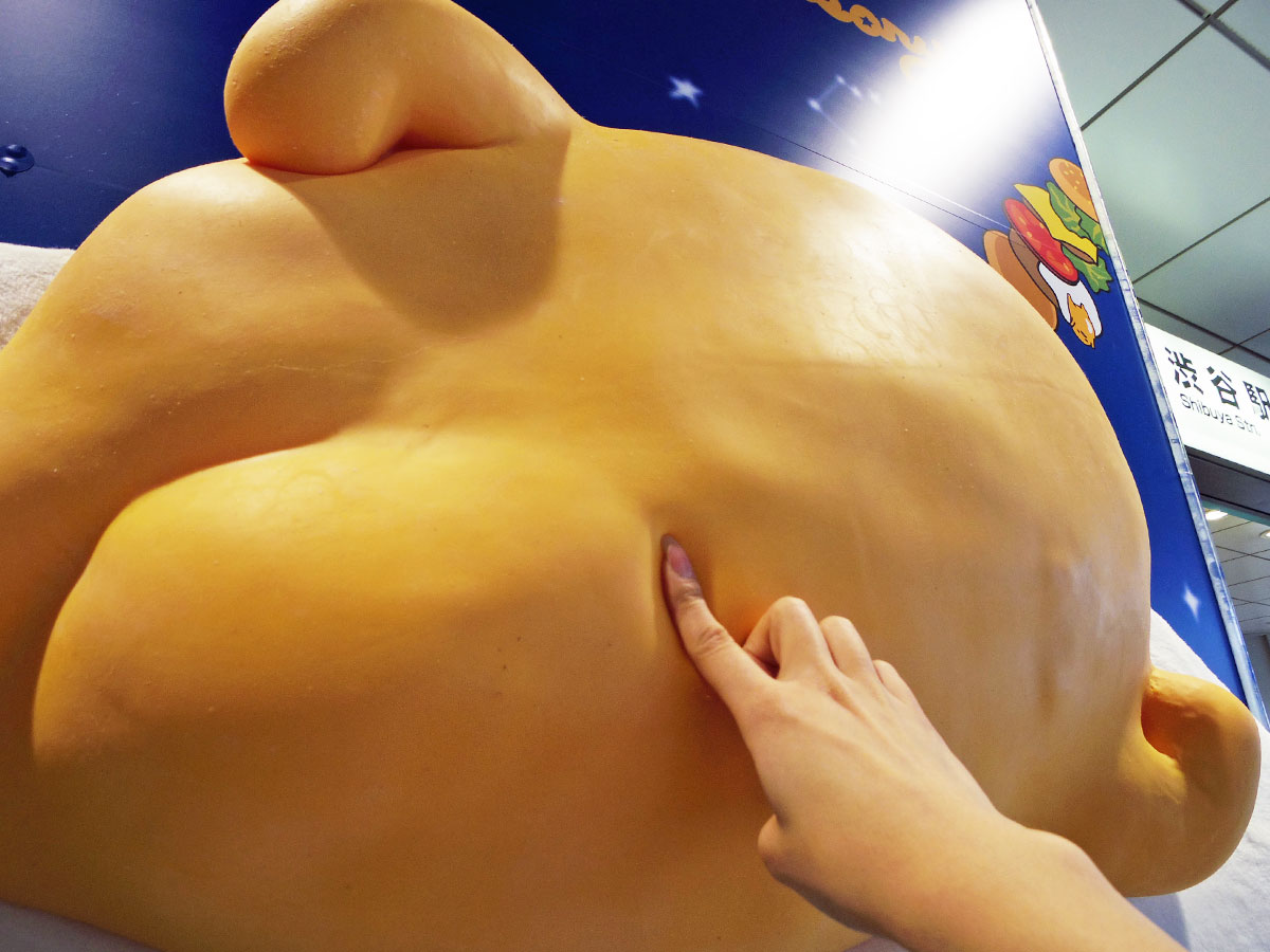 井の頭線渋谷駅改札外のコンコースに4月16日、3D(半立体型)の「ぐでたま」が登場した。
