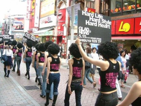 アフロ姿の行列が突如、センター街に出現。SHIBUYA 109・7Fのリニューアルを伝えるプロモーションの一環