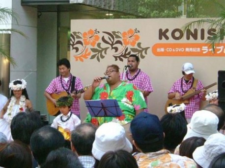 KONISHIKIさんのライブ&サイン会が4日、渋谷パルコ・パート1前で開催。道行く人がやさしい歌声を楽しんだ
